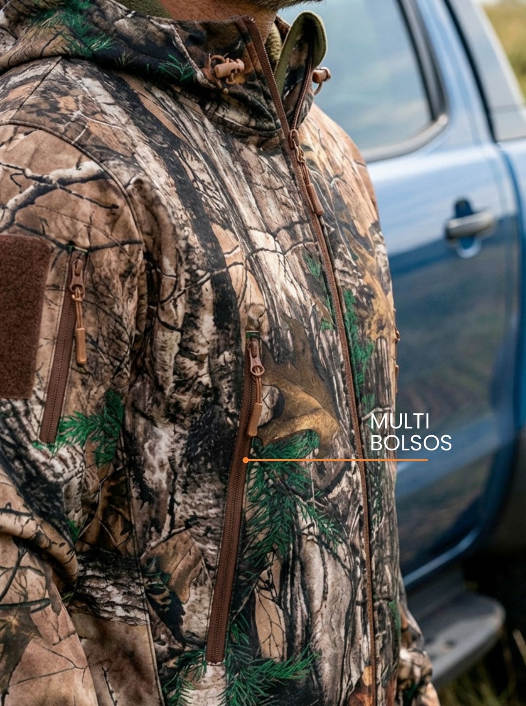 Diversos bolsos estrategicamente posicionados para guardar itens essenciais com praticidade e segurança — celular, carteira, documentos e acessórios.