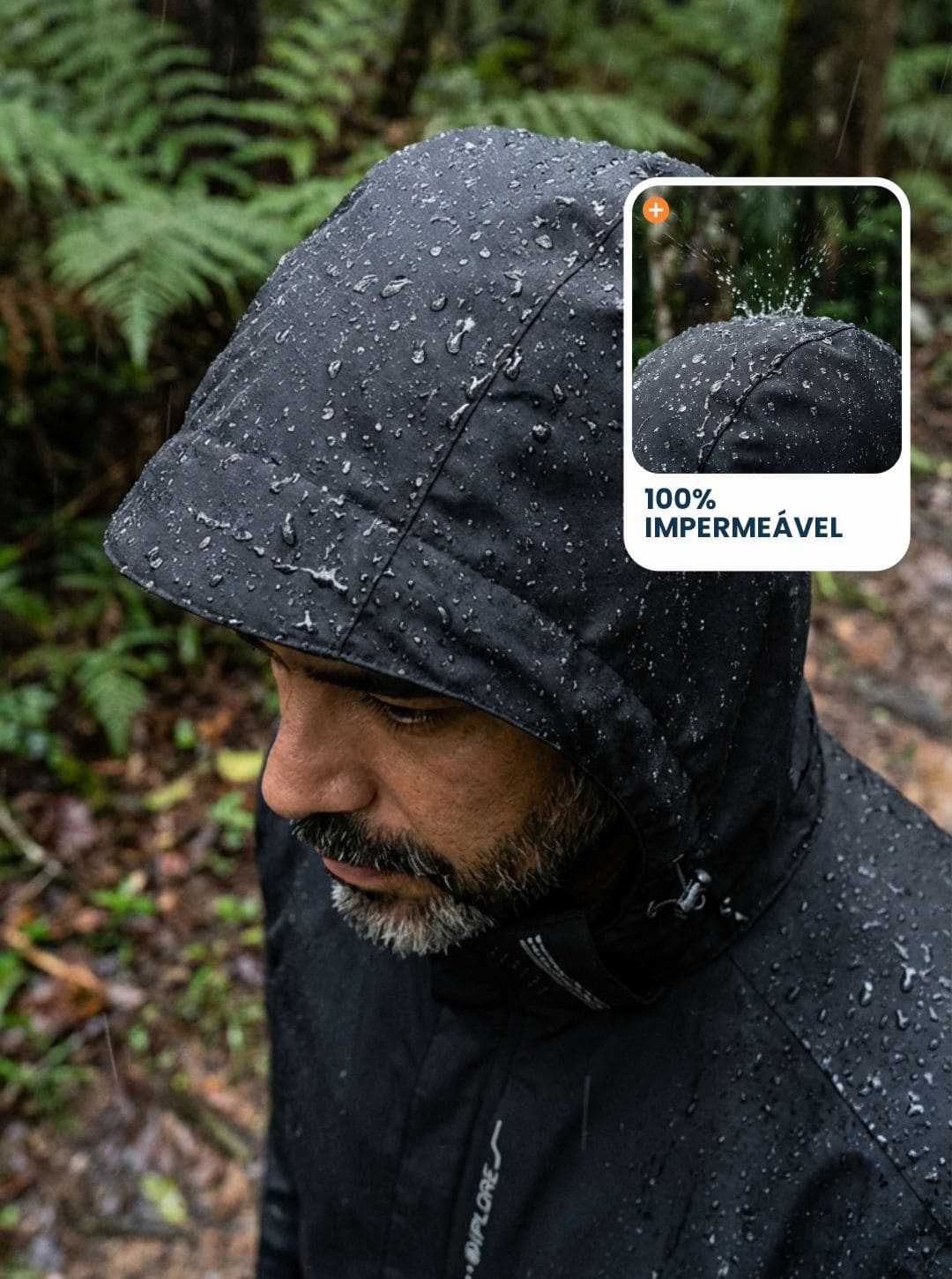 Feita para reagir à água, não absorvê-la. A chuva escorre pela superfície, mantendo seu corpo protegido e seco mesmo em chuva intensa.